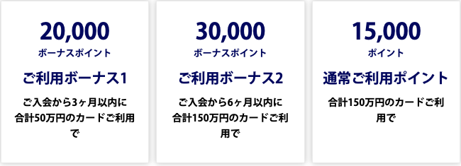 一般的なクレカの入会キャンペーンで獲得できるポイントやキャッシュバックのほうが、還元率は高いかもしれませんが、利用金額の条件はせいぜい5万円〜10万円程度です。