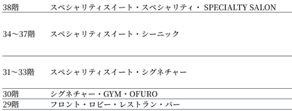 「シグネチャー」「シーニック」「スペシャリティ」の違いは階の違いです。