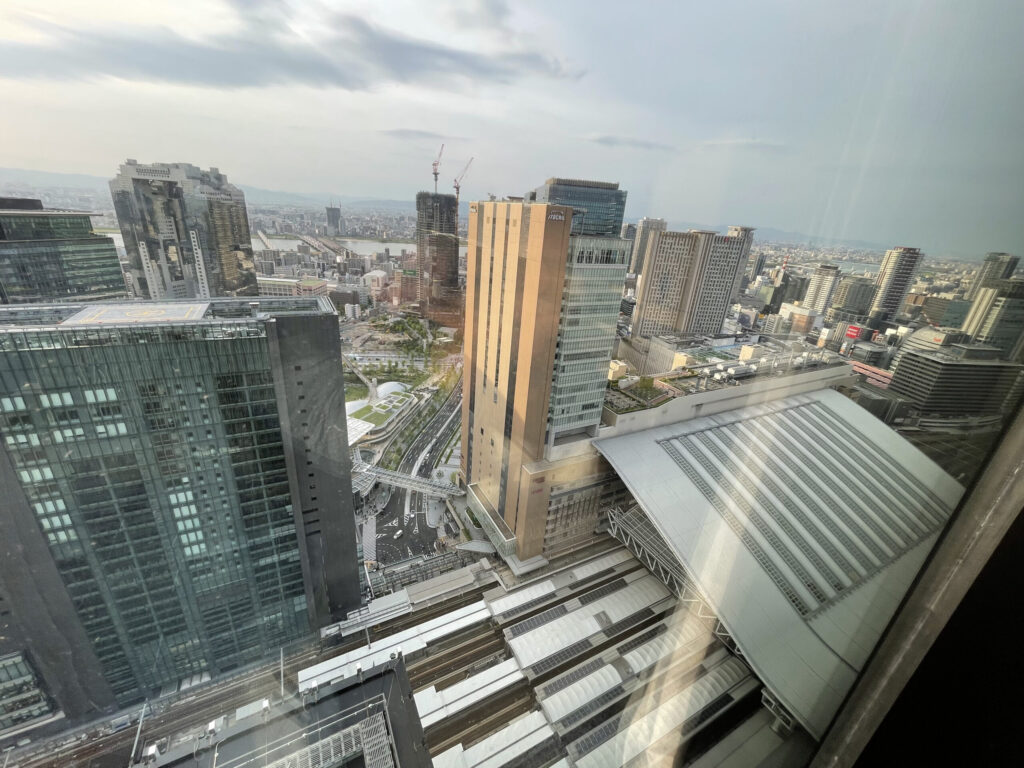 真下はもちろん大阪駅です。屋根があるので見づらいですが、一応電車も見られます。