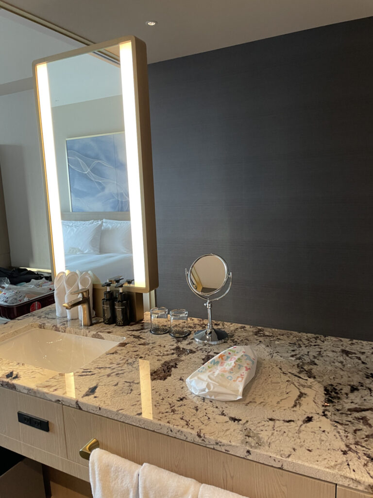 綺麗でお洒落なシティホテルという印象で、ラグジュアリーホテルという感じはしませんでした。ポイントなら安めに泊まれるので「あり」ですが、有償ではまず泊まらないホテルですね。
