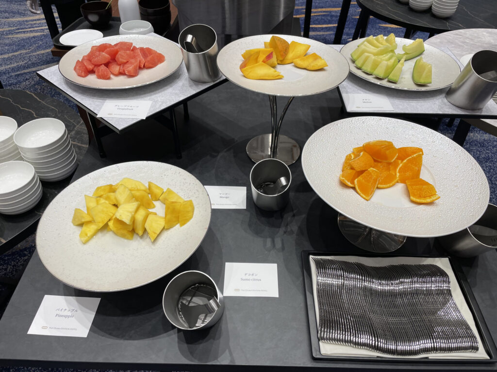 ・朝食ビュッフェは小さい子どもも食べられる野菜やフルーツが豊富。デザートの種類が豊富でどれも美味しいが、それ以外は種類も少なめで9,000円の価値がある感じはしない。